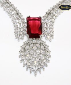 This Crimson Radiance Set is more than just an accessory; it’s a declaration of bold elegance and timeless glamour. Its intricate detailing and superior craftsmanship ensure each element of this red stone jewellery set radiates a modern, commanding opulence. The statement necklace drapes beautifully, drawing all eyes to your neckline with its dramatic presence, while the matching earrings gracefully frame your face with their captivating sparkle. Together, they create a harmonious and fashionable look that speaks volumes about your impeccable taste. This set is ideal for wedding party jewellery, anniversary celebrations, formal dinners, and any special event jewellery where you want to make a chic and memorable statement with a vibrant burst of color.