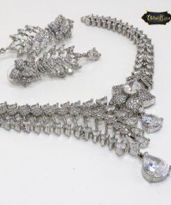 Designed for women who love clean silhouettes and statement details, this Contoured Bridal Jewelry Set fits like a dream. The flowing layout of the necklace follows the natural lines of the collarbone, creating a seamless blend with most necklines. While subtle enough for pre-wedding functions, it still holds its own as a main bridal piece. The earrings mirror the teardrop motif, adding symmetry and elegance to the overall look.