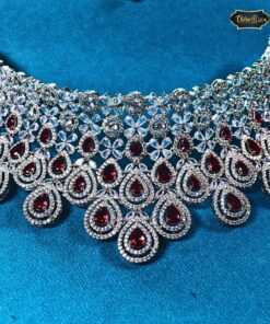 Scarlet Sparkle necklace Set with Earrings- Classis Red Teardrop Stone Jewellery for Events