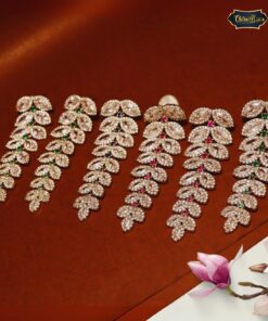 This bold wedding necklace makes a powerful impression. Pair it with a richly embroidered lehenga or a sleek gown to create a dramatic bridal statement. The multi-strand layout adds volume and flair, while shimmering Kundan stones draw attention to the neckline. Brides looking to leave a lasting impression will find it the perfect choice.
