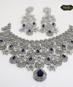 The Navy Gleam Necklace Set exudes refined elegance with its deep navy stones and intricate floral stonework. Designed for those who appreciate classic beauty with a modern twist, this set elevates any outfit, making it perfect for weddings, formal events, or special celebrations. The rich color and detailed craftsmanship create a statement piece that complements a variety of styles. The Navy Gleam Necklace Set combines deep navy stones with intricate floral and teardrop details, offering timeless elegance. Perfect for weddings or special occasions, it adds a sophisticated sparkle to any outfit.