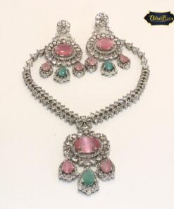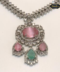 Elevate your celebratory look with this magnificent Pastel Dream Necklace Set. We designed it not just for a single night, but for a multitude of cherished memories. Let the “pastel dream” reflect your joy and gentle confidence as you shine bright. This mint green & pink stone party wear jewellery promises to enhance your natural beauty, making your special occasion truly unforgettable.