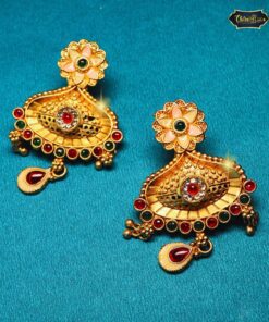 Celebrate your heritage with this elegant ethnic layered jewelry set that adds depth and grandeur to your wedding attire. The necklace’s intricate craftsmanship reflects classic Indian jewelry-making techniques, making it a treasured heirloom. Its multi-layered structure provides a rich texture that complements heavy bridal outfits beautifully.