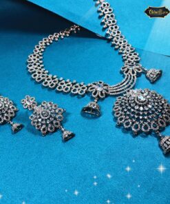 Elevate your bridal look with this Silver Shine Indian Bridal Set, a stunning expression of traditional charm and contemporary elegance. Designed for the bride who values heritage, this set blends intricate craftsmanship with modern grace. Whether you’re walking down the aisle or attending a grand celebration, this bridal ensemble promises to turn heads. Adorn your special day with exquisite Silver Indian Bridal Jewelry, blending traditional artistry and elegance in every handcrafted detail.